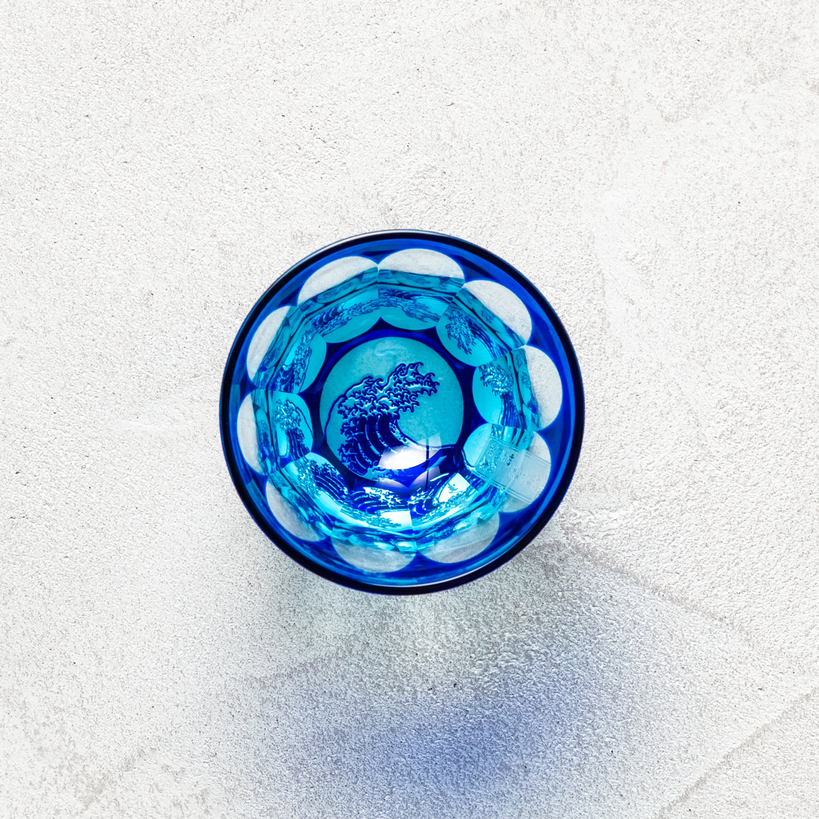 平切子と呼ばれる江戸切子技法と世界トップレベルのサンドブラスト技法を兼ね備えている。