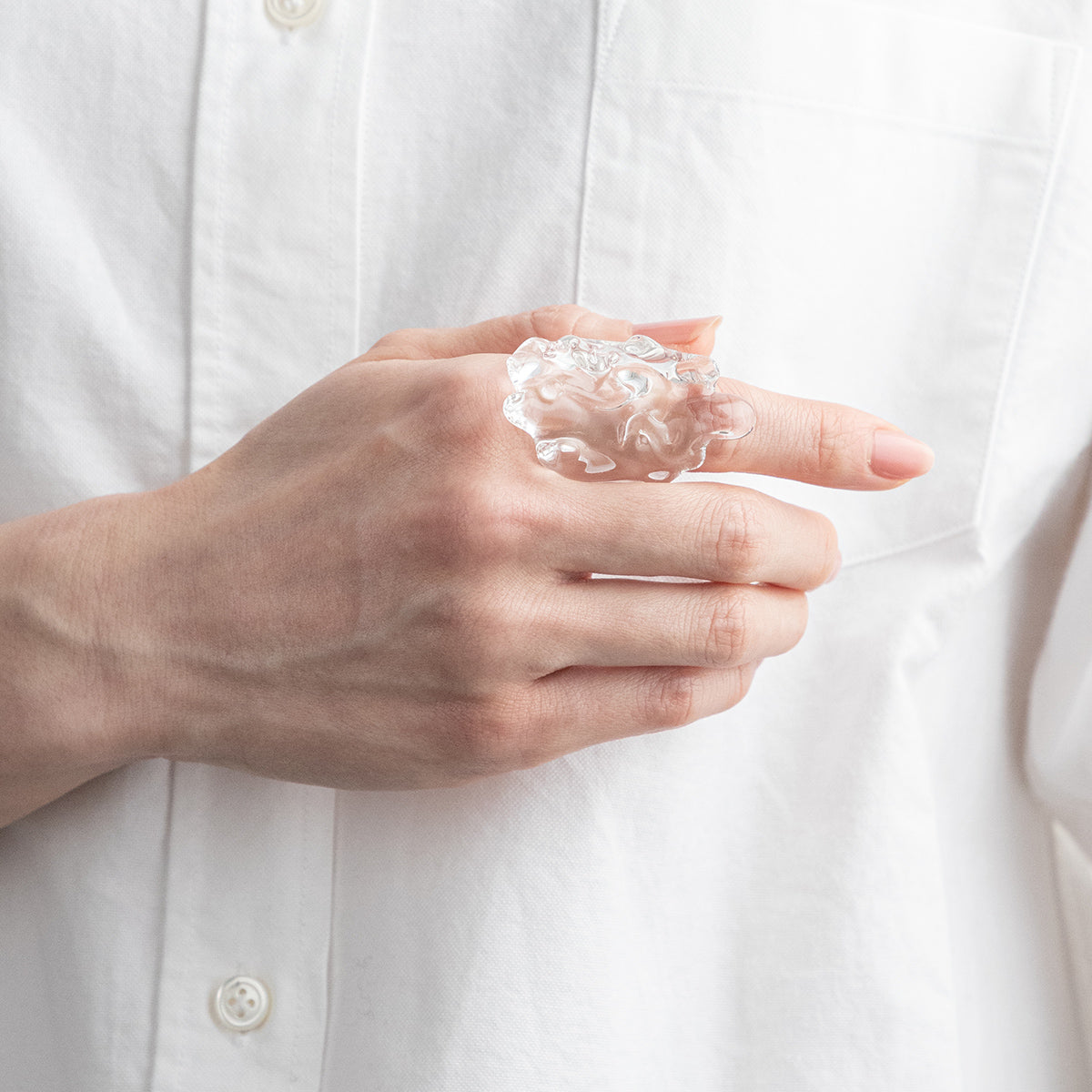 脂肪をモチーフにしたガラスのリング。