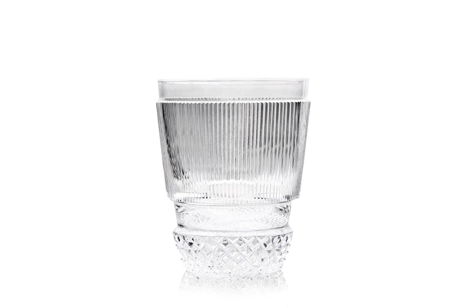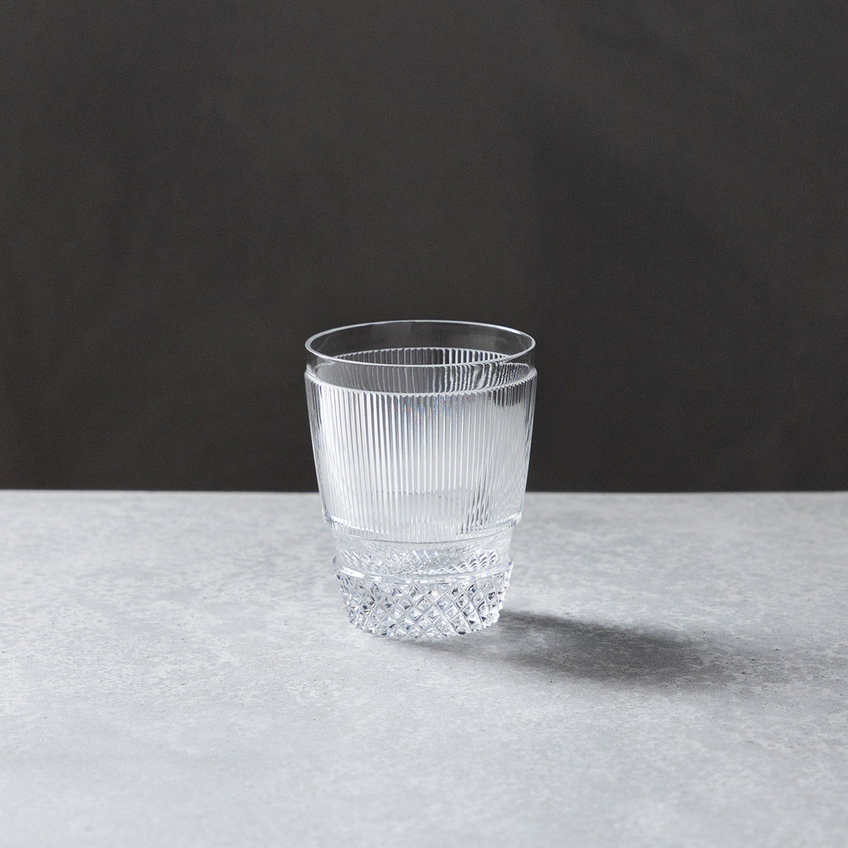 連続する、繊細な縦の線。片手に収まる小さなグラスですが、この無数の線によって広がりを感じさせるデザインです。透明な世界に、どれだけシンプルに、印象的にカットを施すか。「江戸切子」工房の一つ「小林硝子工芸所」の若き4代目・小林昂平(こうへい)氏の試みによって生まれた製品です。「小林硝子工芸所」は明治末期より続く、「江戸切子」のなかでも歴史ある工房。父である3代目・淑郎(よしろう)氏は、ガラス全面にカットを入れた、きらびやかな総柄の作品を数多く制作しています。父に敬意の念をもちながら、一方で自分にしかできない表現を日々模索。父が華やかな表現をするのであれば、自分はシンプルな線でより美しさを表現できないかと考え、このグラスが生まれました。洗練されたカットを片手に、お好きな飲み物をお楽しみいただけます。