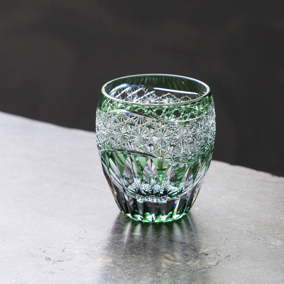 ガラス専門店 │ 江戸切子 │ 鍋谷 聰 │ ロック向日葵 緑 – TSUCHI-YA │ ガラスの器と工芸